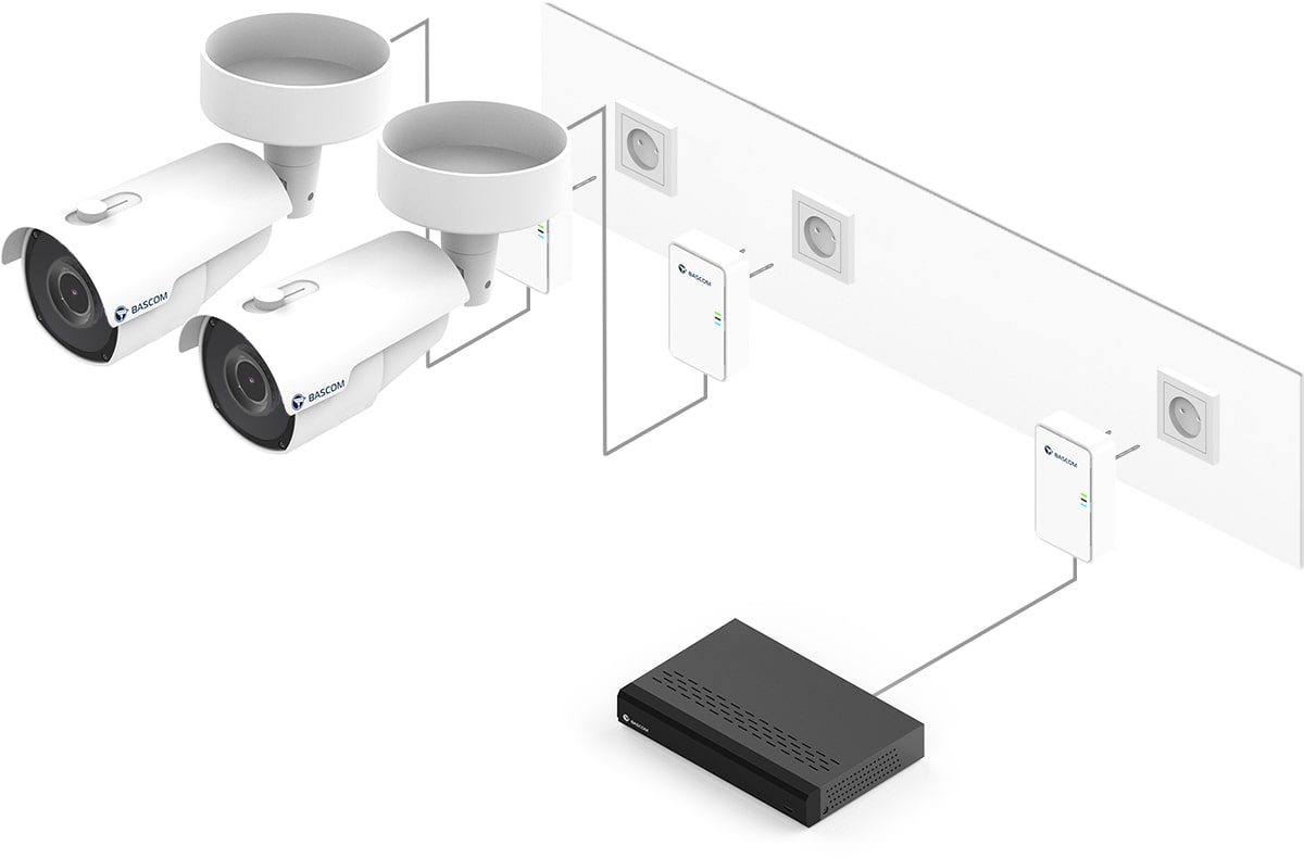 Dank der revolutionären Bascom®-POWER-Technologie sendet dieses Kamerasystem Bilder nicht mehr über WLAN, sondern über Ihre Stromleitung. Sie schließen die Kameras an die Steckdose an, die Kameras verbinden sich dann automatisch mit dem Rekorder. Das Ergebnis: eine hohe Bildqualität und die Zuverlässigkeit eines kabelgebundenen Kamerasystems, ganz ohne Kabel.