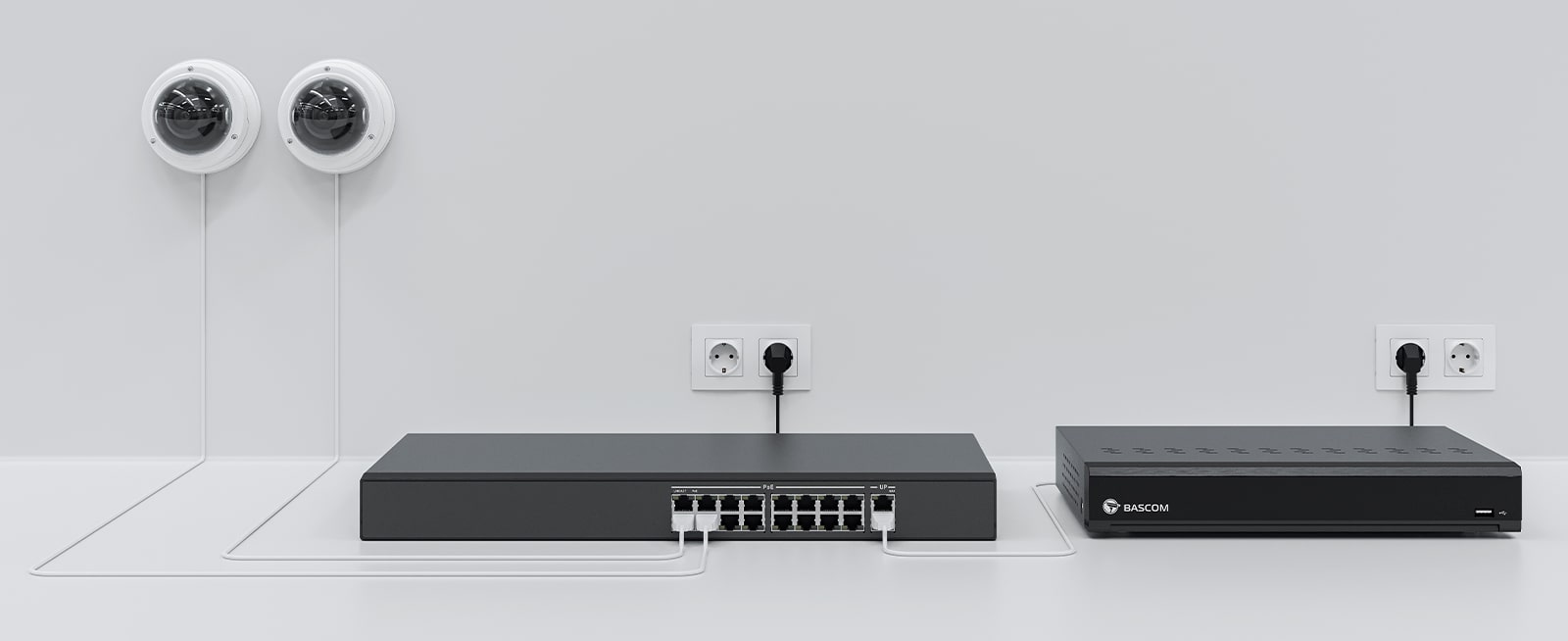 Bei der Installation eines kabelgebundenen Kamerasystems werden Kameras in der Regel direkt an den Rekorder angeschlossen. Für größere Systeme kann jedoch die Verwendung eines PoE-Switches effizienter sein, insbesondere wenn es einen großen Abstand zwischen einer Gruppe von Kameras und dem Rekorder gibt. Sie schließen dann mehrere Kameras an den PoE-Switch an und müssen anschließend nur noch ein Kabel zum Rekorder ziehen.