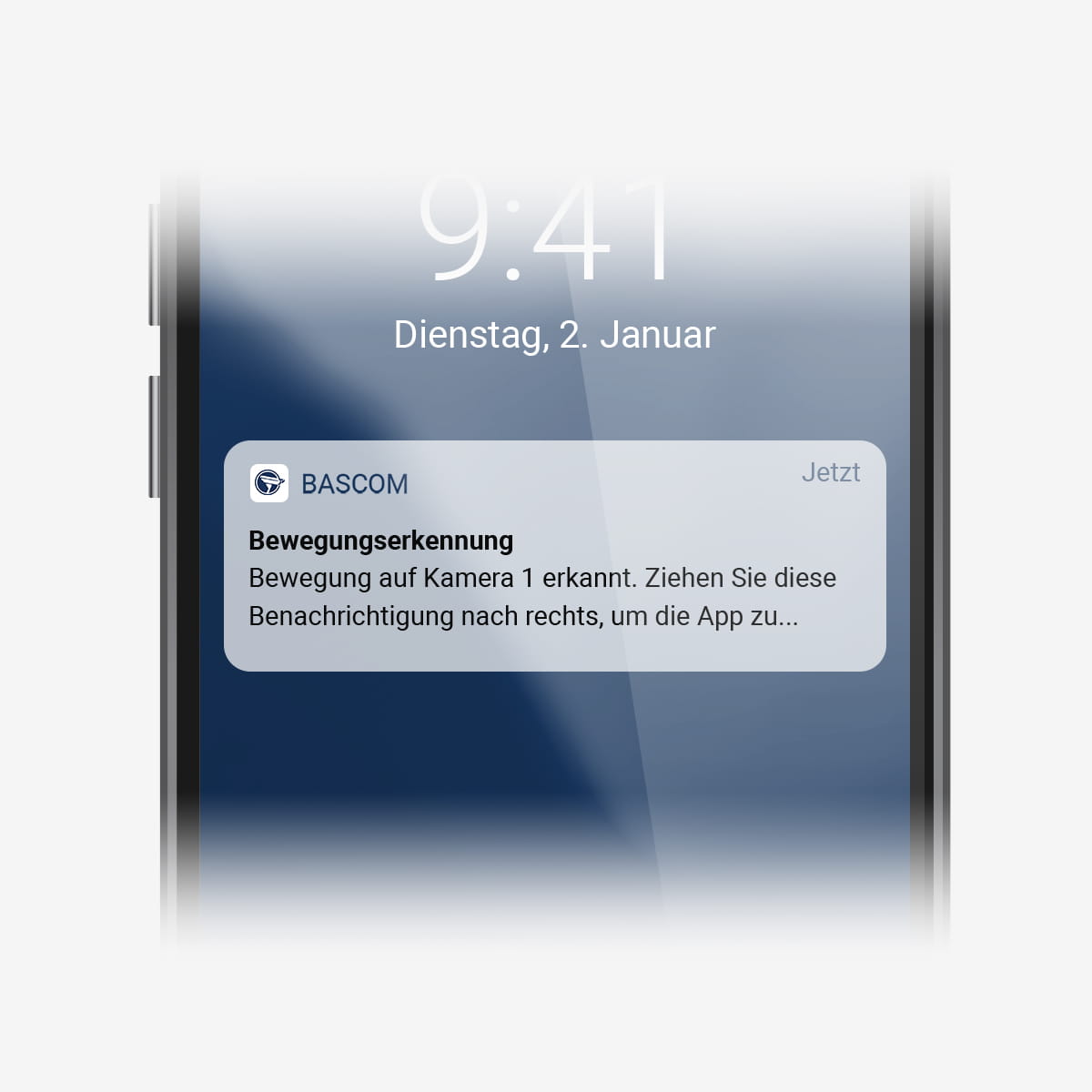 Weltweit live mitverfolgen: Erhalten Sie jederzeit und überall direkten Zugriff auf Ihr Kamerasystem über die Bascom-App auf Ihrem Smartphone.
